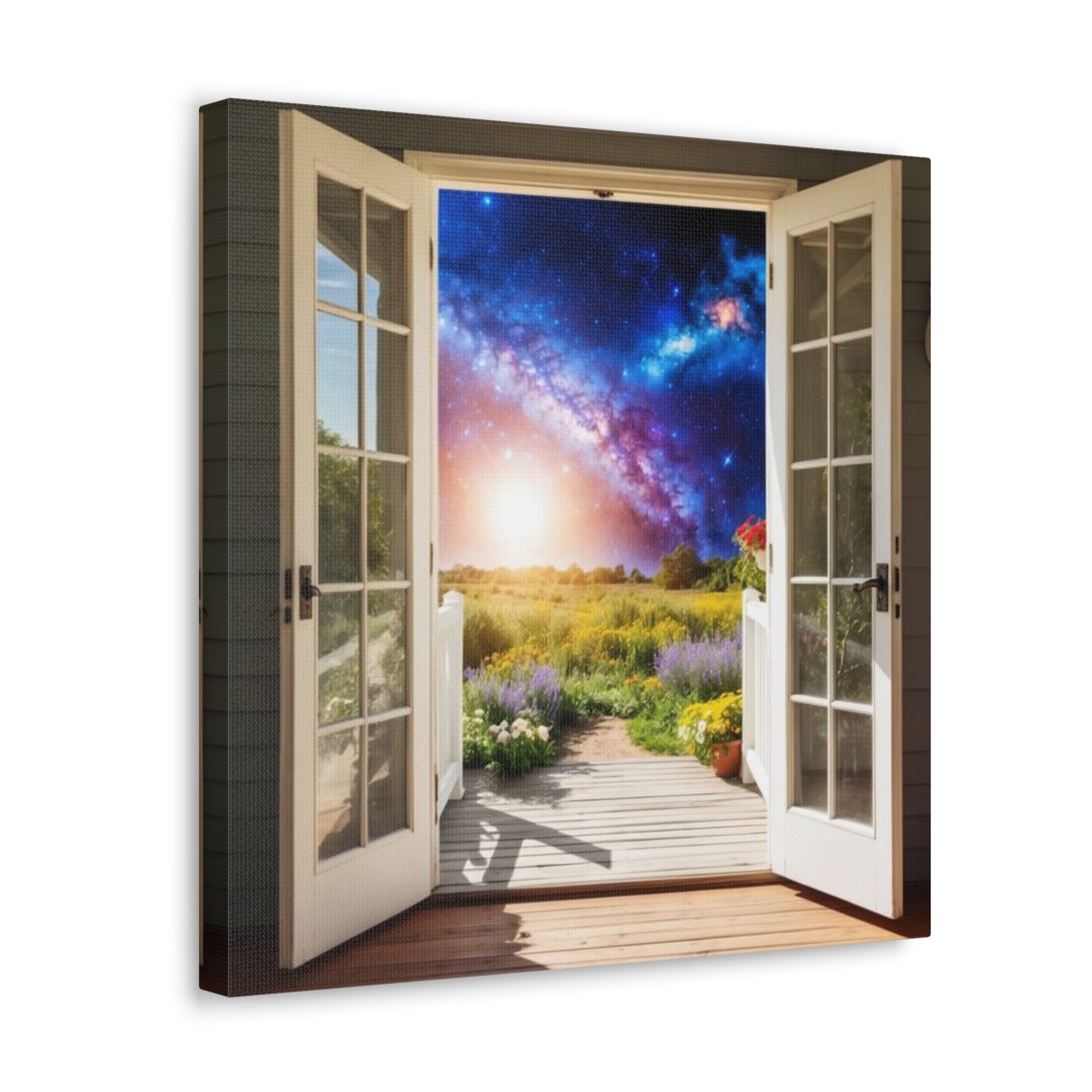 Inspired by our blog series, Violets For Your Soul, the 'Awakenings' Collection reminds us that life often brings us just what we need at just the right time. Enjoy this beautiful reminder of synchronicity and Divine Love with the 'Awakenings' Collection.' Experience this canvas gallery wrap featuring a beautiful open door to the Universe. This work invites you to dream beyond the limits of form and concept as we know it. Awakenings also makes a great focal point for meditation, creative energy and self-reflection.