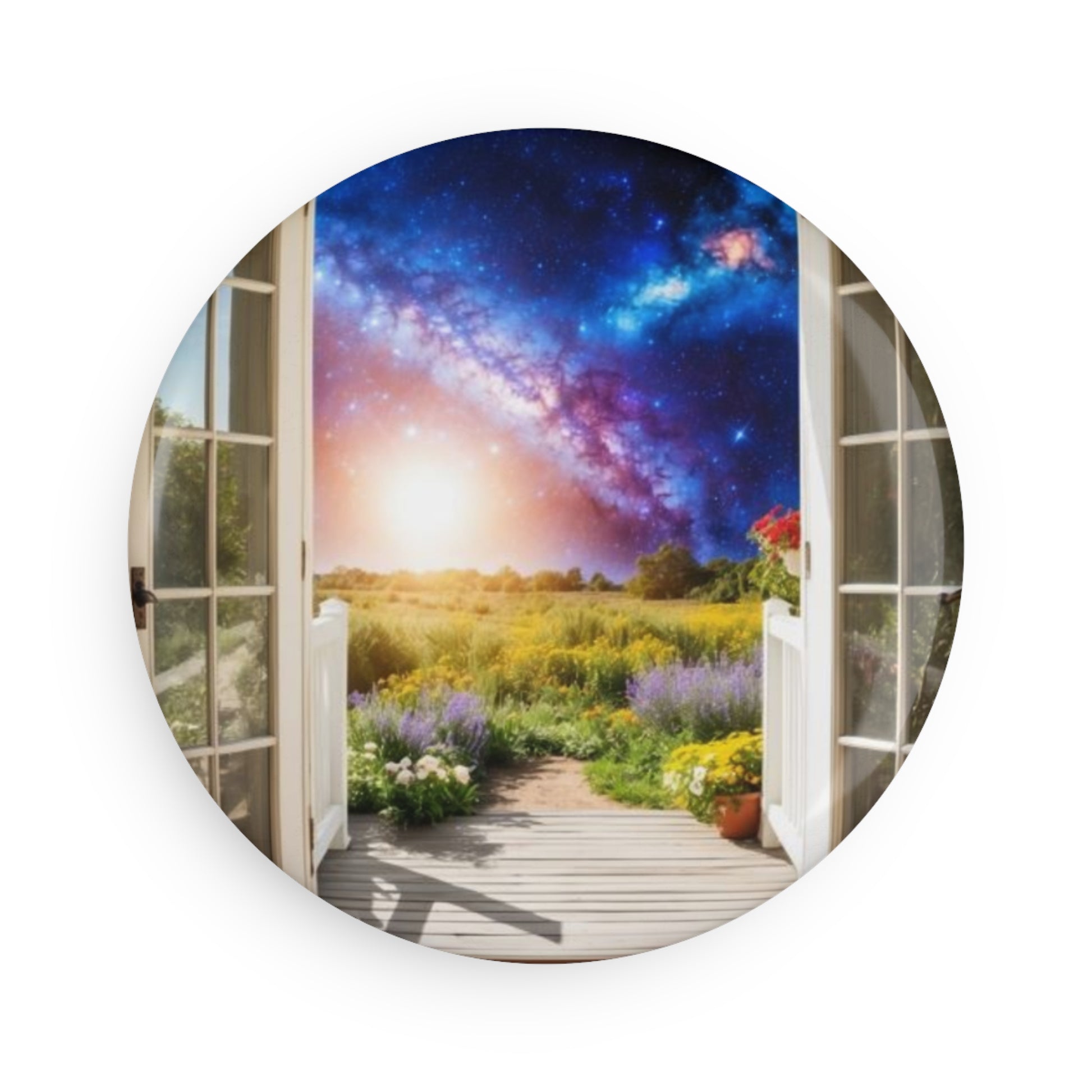 Inspired by our blog series, Violets For Your Soul, the 'Awakenings' Collection reminds us that life often brings us what we need at the right time. Enjoy this beautiful reminder of synchronicity and Divine Love with the 'Awakenings' Collection. Experience this collection featuring a beautiful open door to the Universe. The collection invites you to dream beyond the limits of form and concept as we know it. This magical image is a great focal point for meditation, creative energy, and self-reflection.