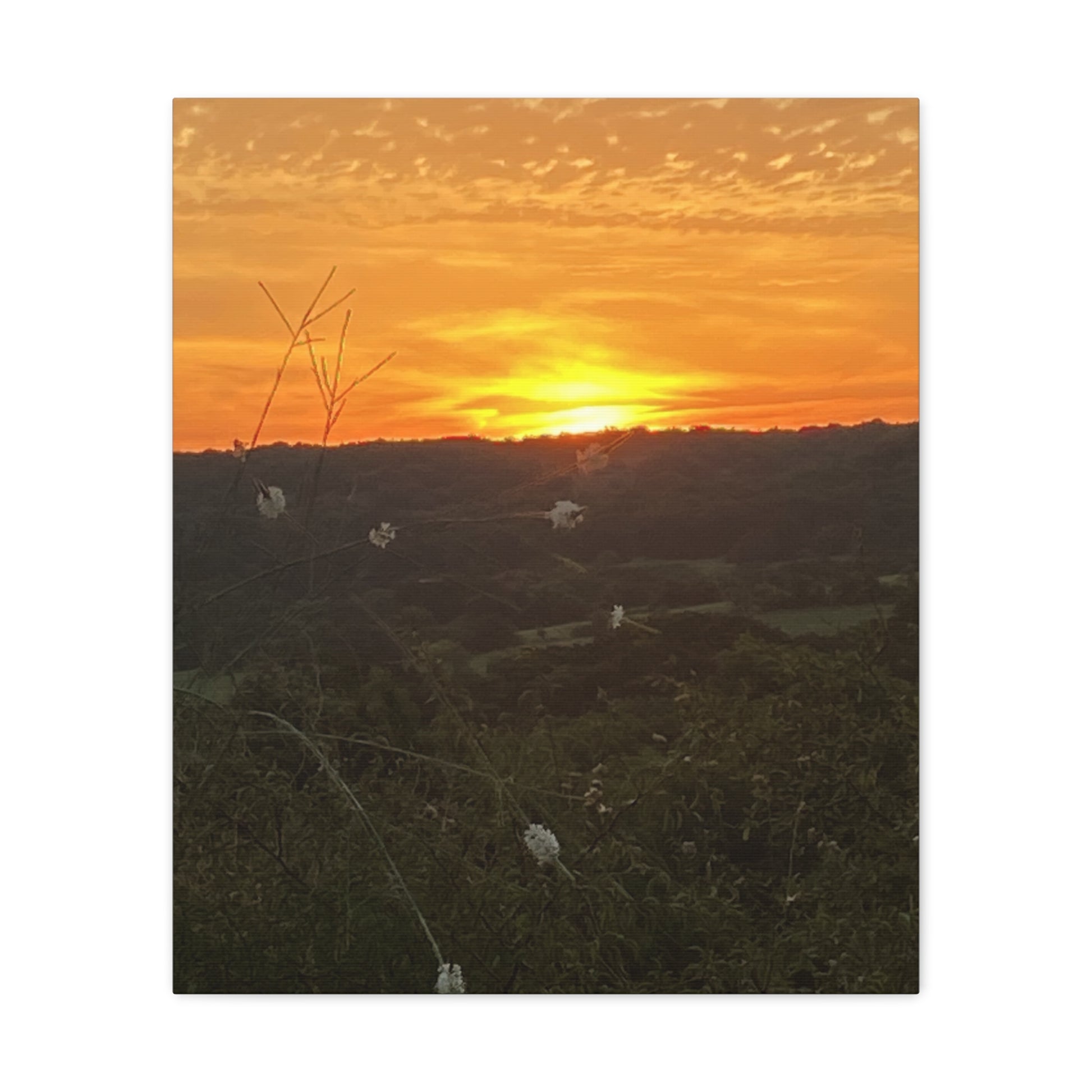 Experience the beauty of a true 'Texas Sunrise' vibe with this canvas gallery wrap featuring the sun's first peek of the day from our hilltop. A morning made for coffee on the porch. Perfect for art lovers and interior design enthusiasts looking to add a touch of country bliss to their living space. Ideal for gifting on birthdays, anniversaries, housewarmings, Christmas, or any special occasion.