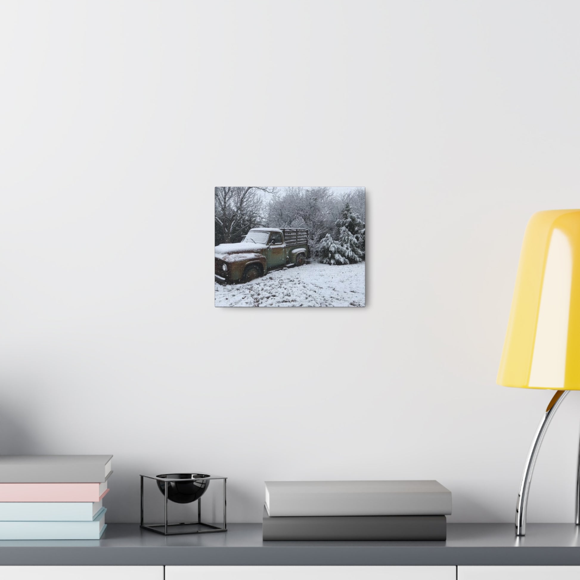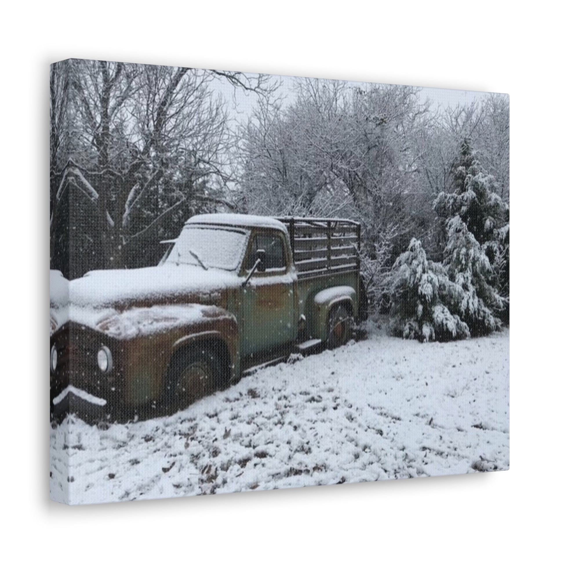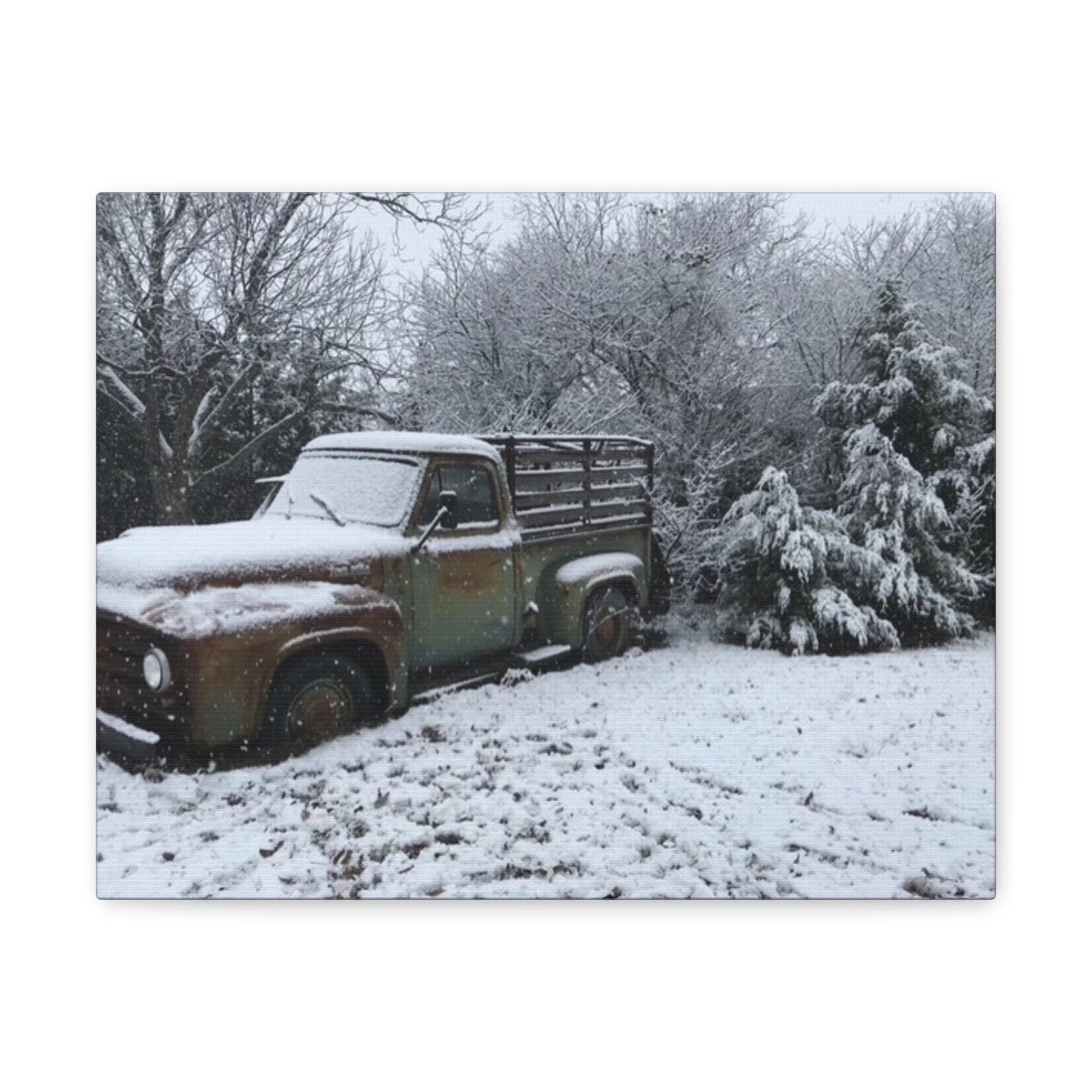 Experience the cozy 'Winter on the Farm' vibe with this canvas gallery wrap featuring our '53 Ford in a blanket of snow. Perfect for art lovers and interior design enthusiasts looking to add a touch of wintery country bliss to their living space. This wrap is ideal for gifting on birthdays, anniversaries, housewarmings, Christmas, or any special occasion.