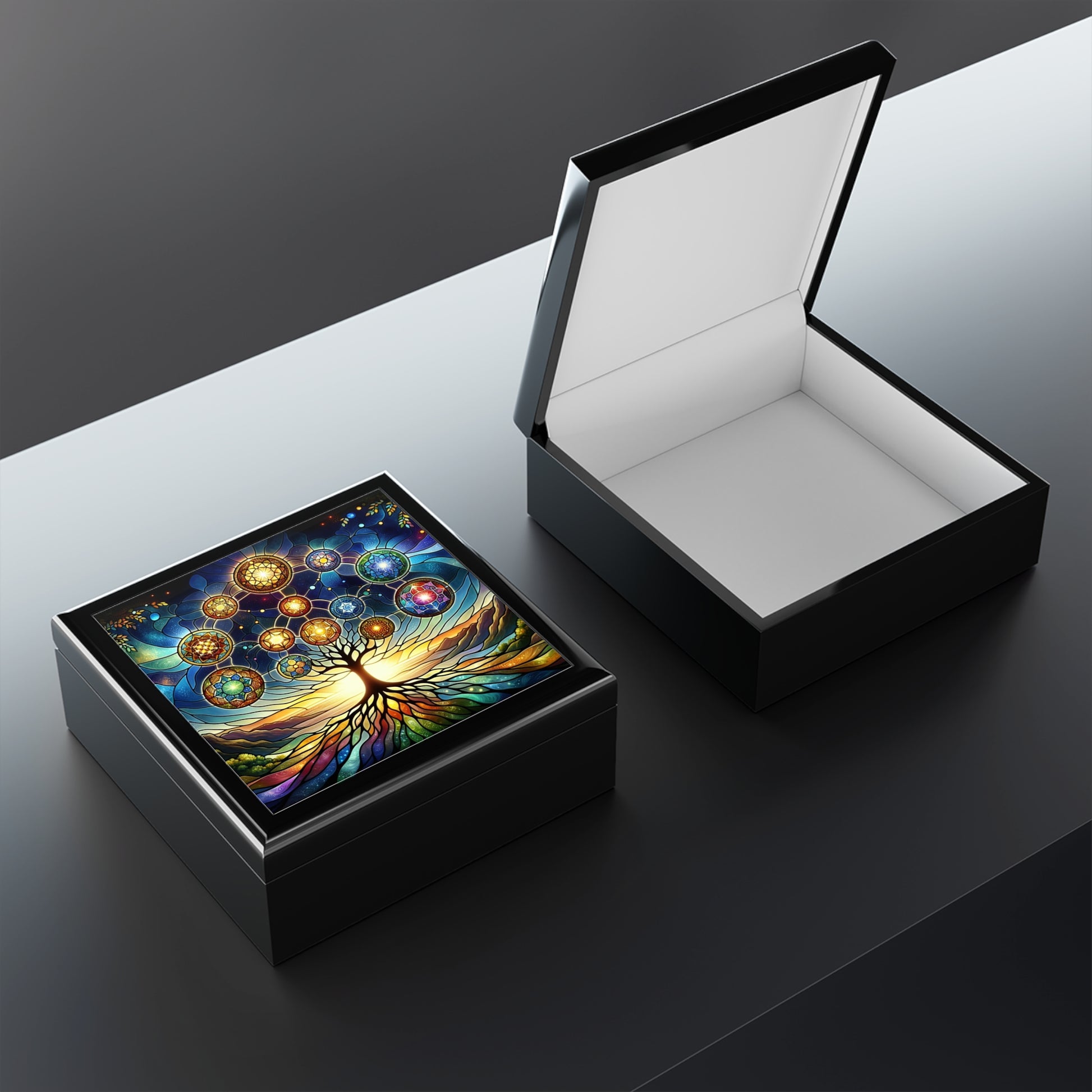 Keep all your valuables safe in custom style with this personalized jewelry box. Available in multiple colors, it features dual hinges that lock at 90 degrees, an elegant glossy finish, and a soft interior lined with felt material.