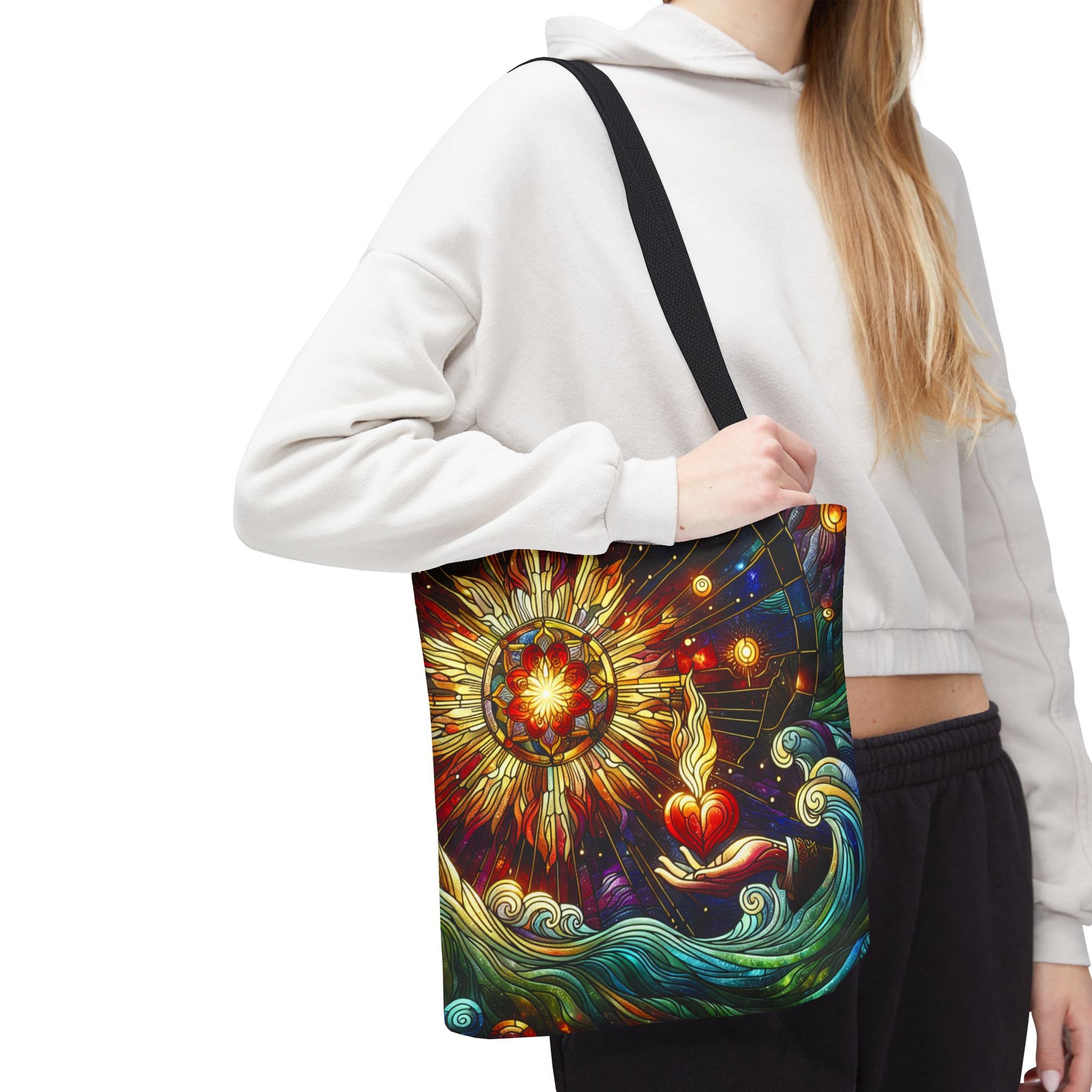 Perfect for carrying all your items. The bags are made with spun polyester, which features double-stitched seams, cotton webbing straps, and nonwoven laminate lining for high-end durability. Available in three sizes and multiple strap colors to add functionality and style. The smaller 13x13 makes a great handbag, while the generous 16x16 and 18x18 are perfect for yoga class and the gym!