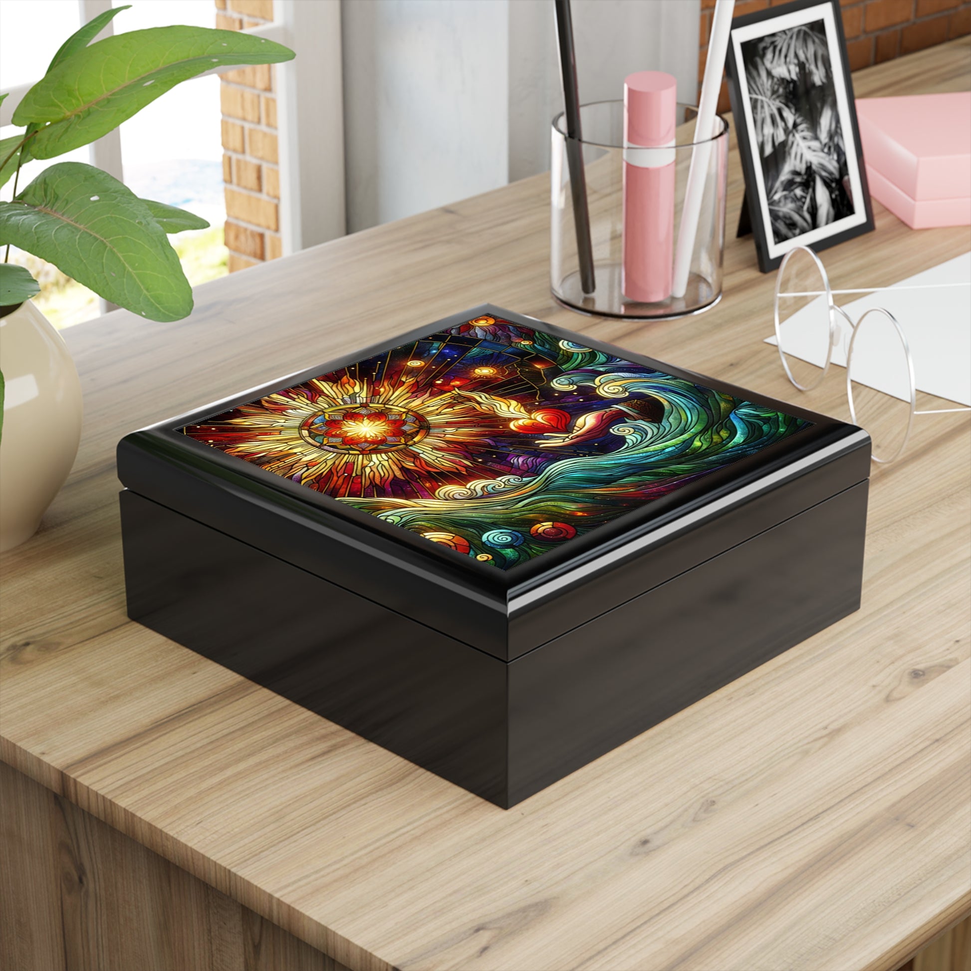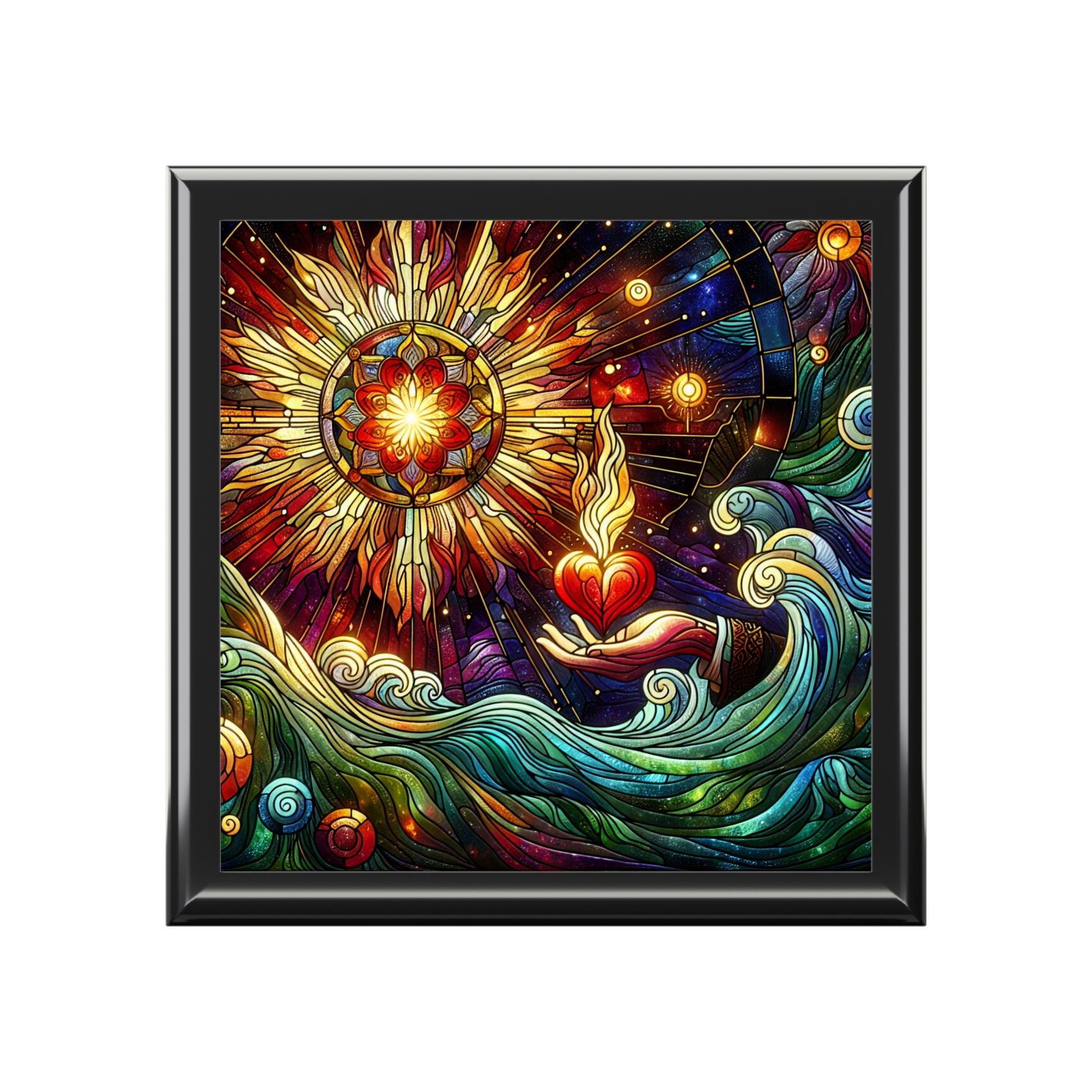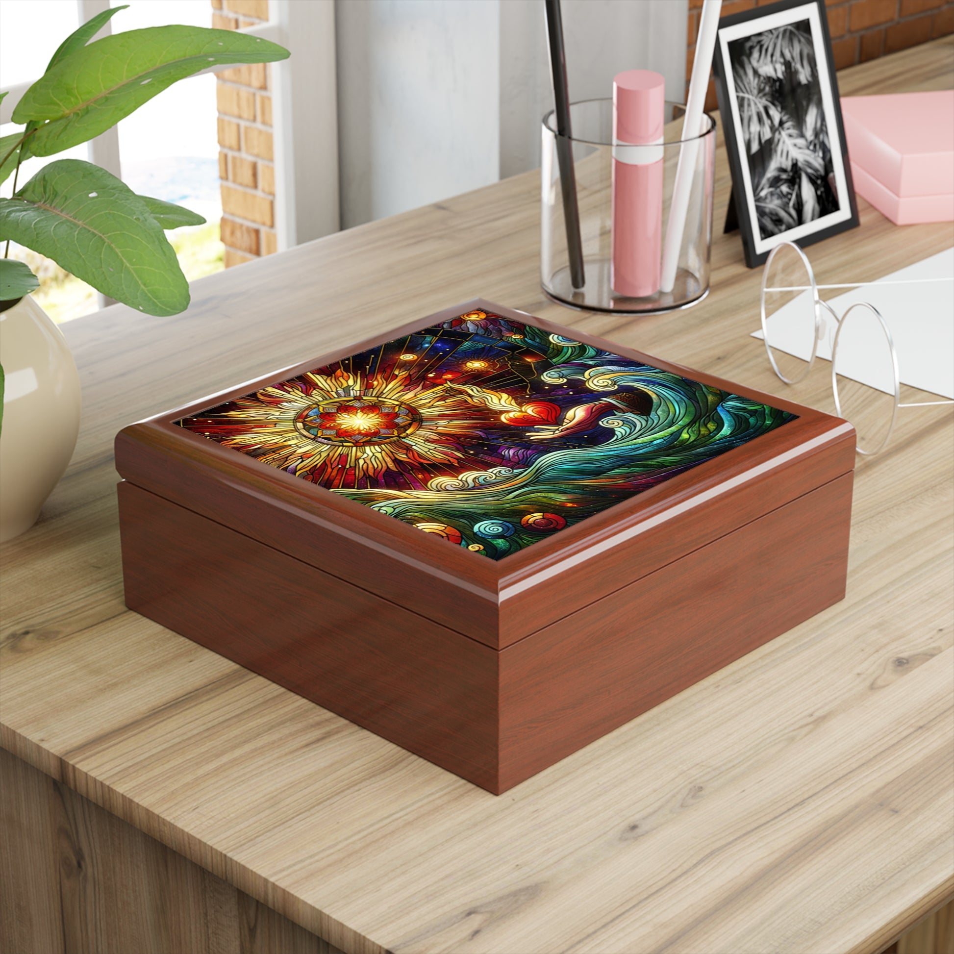 .: 6" x 6" (15cm x 15cm) decorated glossy sublimation ceramic tile fitted on top of the lid
