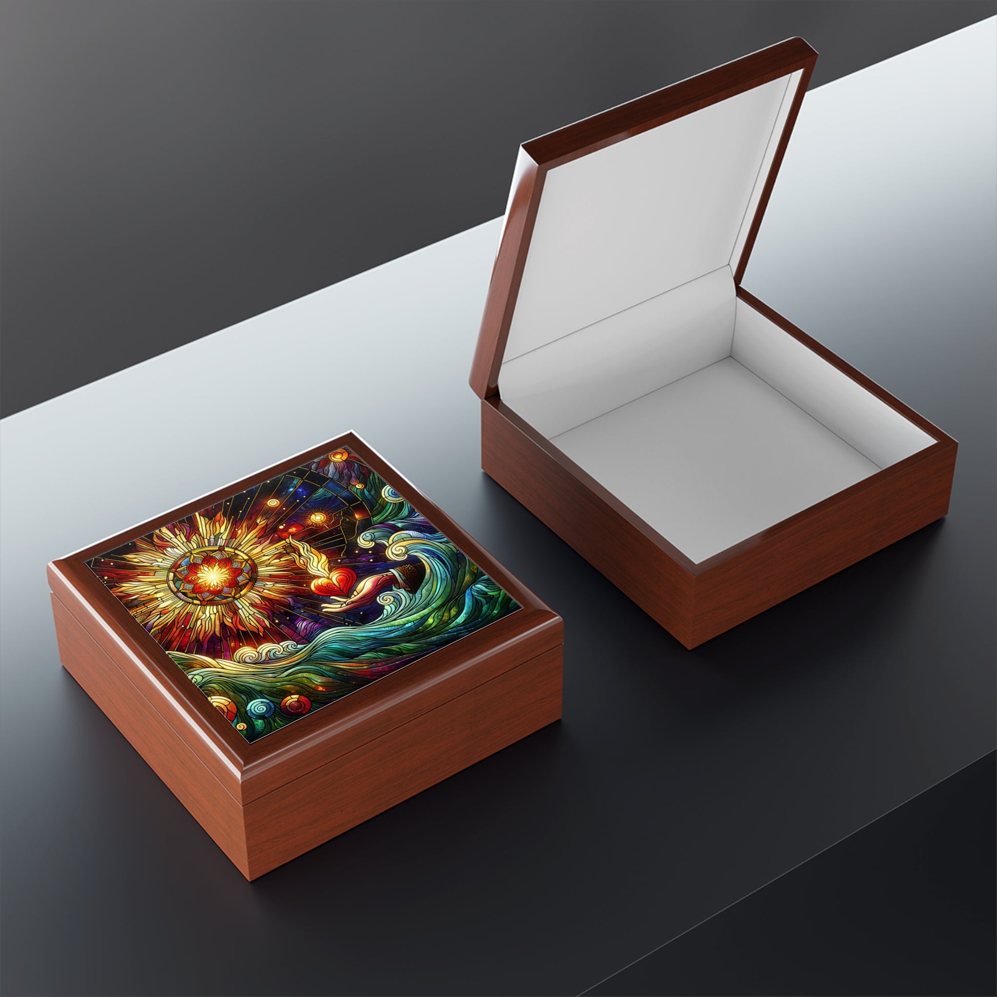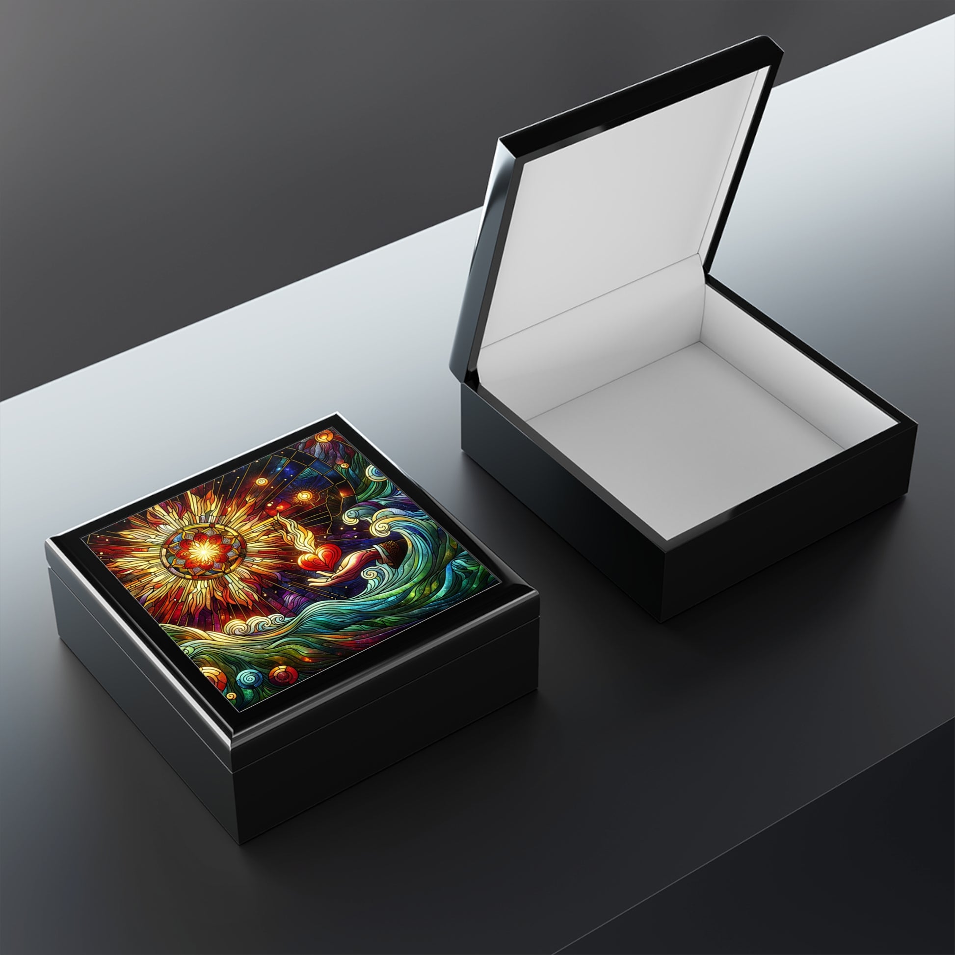 Keep all your valuables safe in custom style with this personalized jewelry box. Available in multiple colors, it features dual hinges that lock at 90 degrees, an elegant glossy finish, and a soft interior lined with felt material.