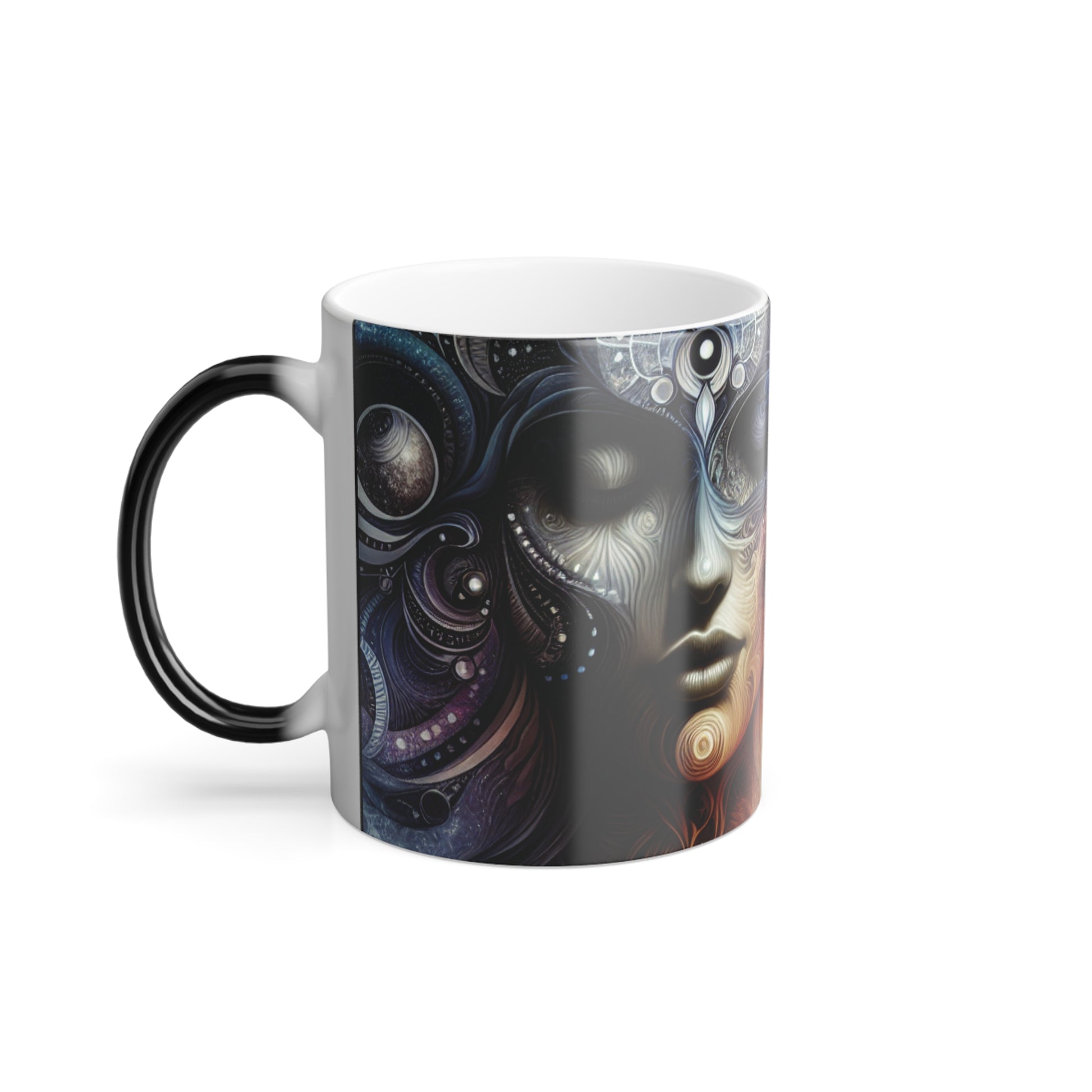 Enjoy a heat-sensitive reveal when pouring in a hot drink. This mug adds a touch of uniqueness to your daily coffee or tea routine and makes a great gift for spiritual or artistic individuals. Ideal for birthdays, holidays, or any special occasions.